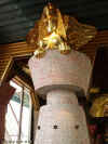 Egyptian sphinxes atop prominent columns line and punctuate public areas