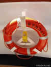 in this glass case are a 20th century Dutch ship model, a spindle, net