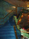 glass lights on the ceiling are dotted with fiber optic lighting which